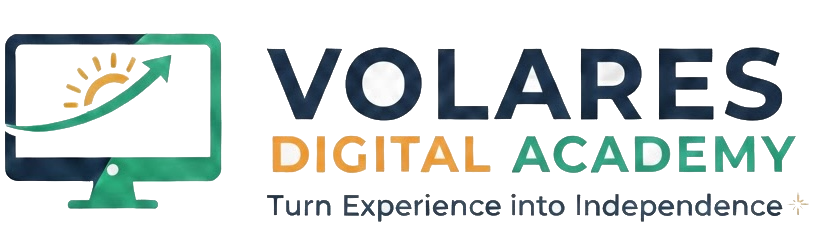 Volares Digital Academy is an Ai-Powered Digital Academy. We give you the leaning tools and practical skills to turn your career experience into a thriving digital second act. No fluff. No tech-overload. Just your next chapter, on your own terms as a Digital Marketing for Retirepreneurs expert.